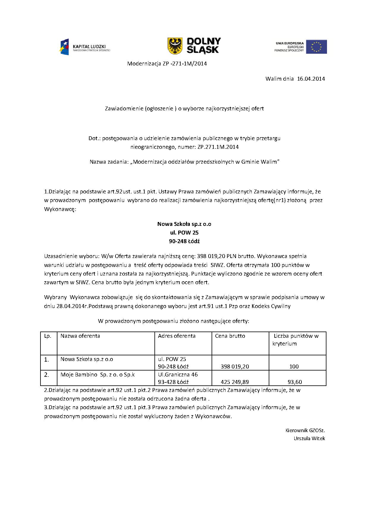 Numer ogłoszenia: 104534 - 2014; data zamieszczenia: 27.03.2014